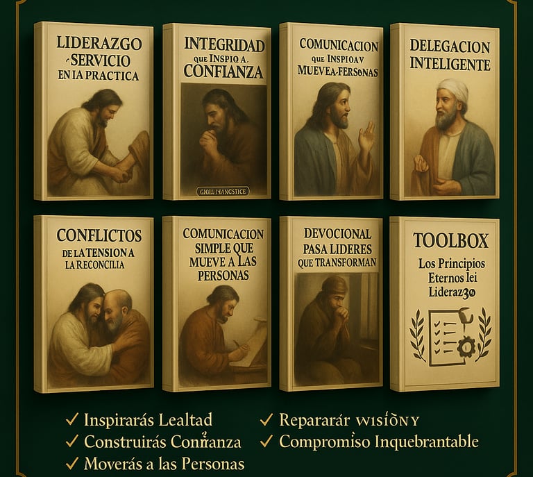 Recibirás una colección práctica de libros digitales que traducen la sabiduría bíblica en hábitos y herramientas de liderazgo para el día a día. Incluye explicaciones claras, plantillas y checklists imprimibles, y playbooks de 30 días para servir mejor, comunicar con claridad, delegar con seguridad, dar feedback, resolver conflictos y construir visión. Aplicable a trabajo, iglesia, familia, escuela y comunidad.
